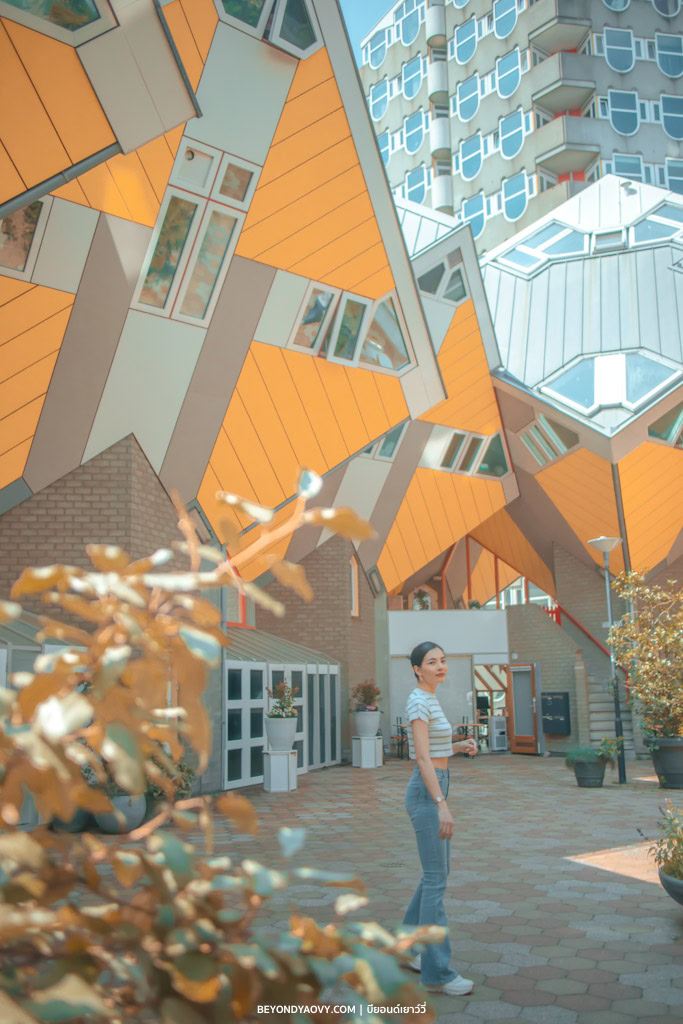 การเดินทาง: นั่งรถรางสาย 24 ปลายทาง De Esch จากสถานีรถไฟไปลงที่สถานี Blaak ใช้เวลาประมาณ 15 นาที จากนั้นเดินออกจากสถานีมาจะเจอกับบ้านลูกบาศก์เลย